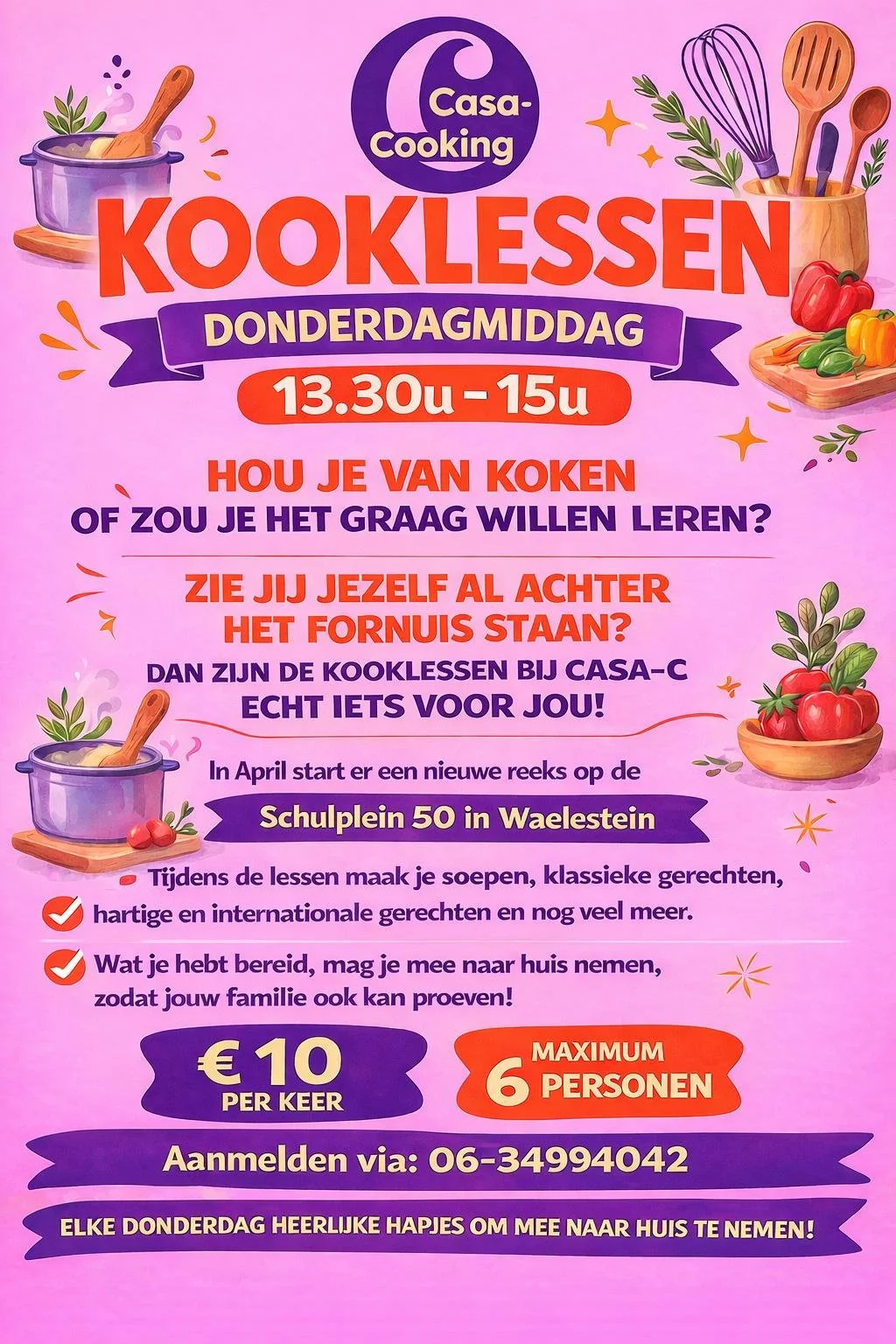 Kooklessen op donderdagmiddag