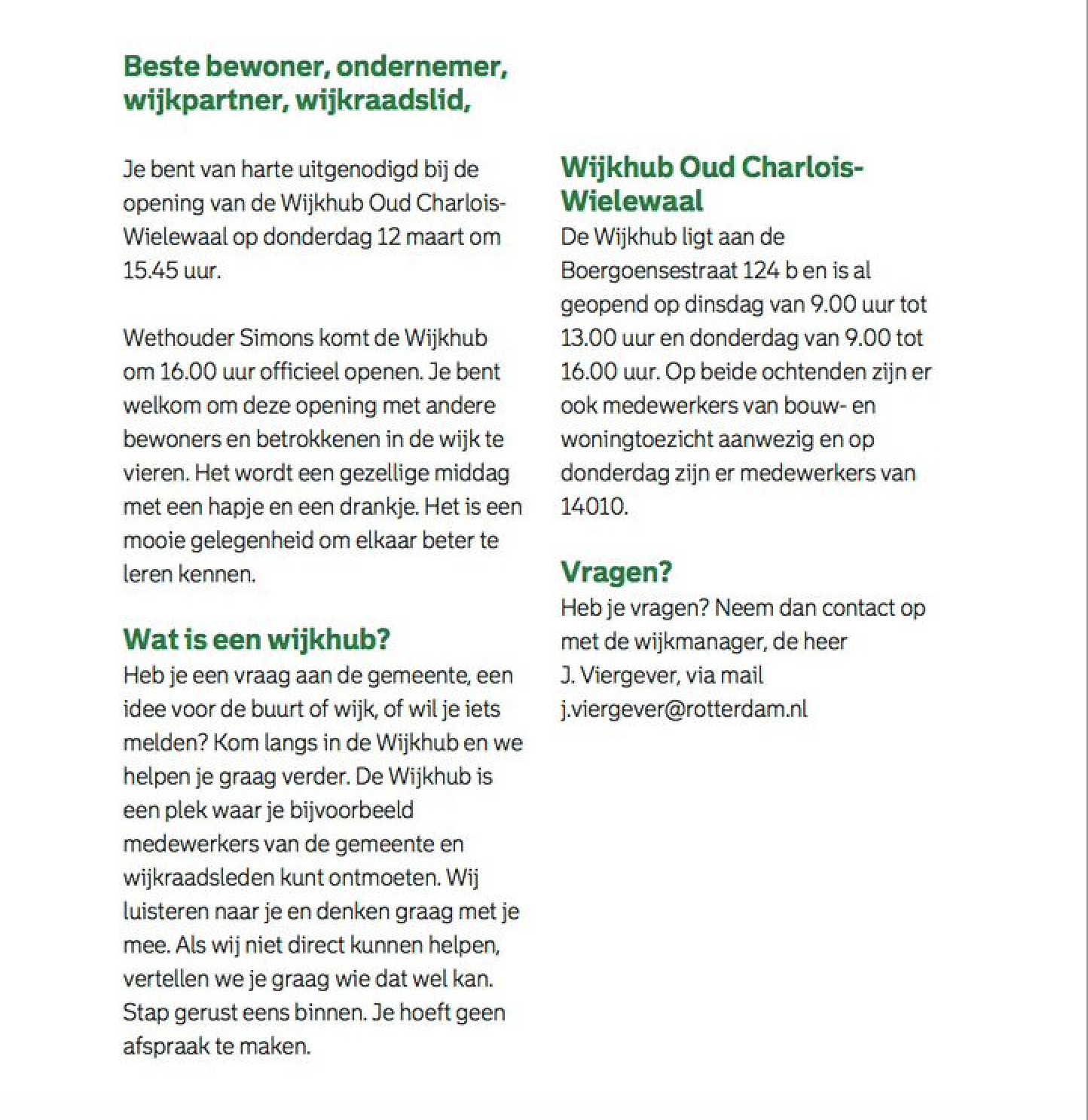 📧 Vragen? Neem contact op met wijkmanager J. Viergever via: j.viergever@rotterdam.nl